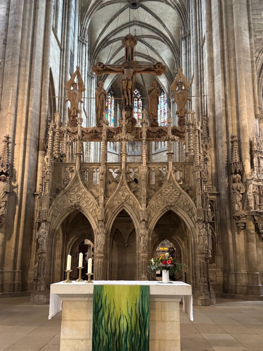 Um 9.30 Uhr ging es weiter Richtung Halberstadt. Erster Stopp: Harzer Glashütte Derenburg – interessante Führung zur Glasherstellung. Dann Mittagspause und anschließend die letzte romanische Station unserer Reise: der Halberstädter Dom St. Stephanus und St. Sixtus.