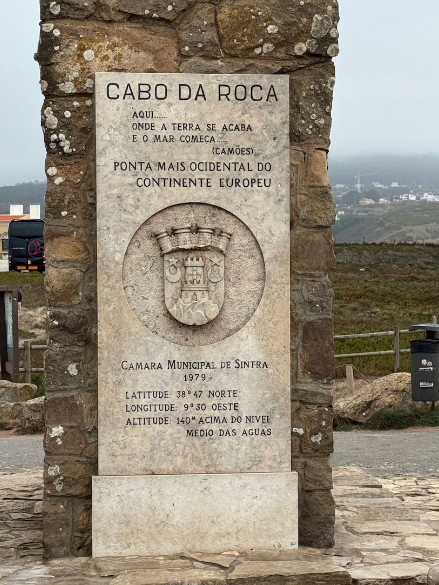 Aufstehen um 5.45 Uhr, Frühstück um 6.30 Uhr, Abfahrt um 8.00 Uhr. Zuerst ging es hinauf nach Sintra – dichte Wolken, feucht und kühl. Trotzdem ein schöner Ort mit vielen Souvenirgeschäften. Danach weiter zum Cabo da Roca, dem westlichsten Punkt des europäischen Festlands. Hier klarte es etwas auf, aber der Wind war heftig.