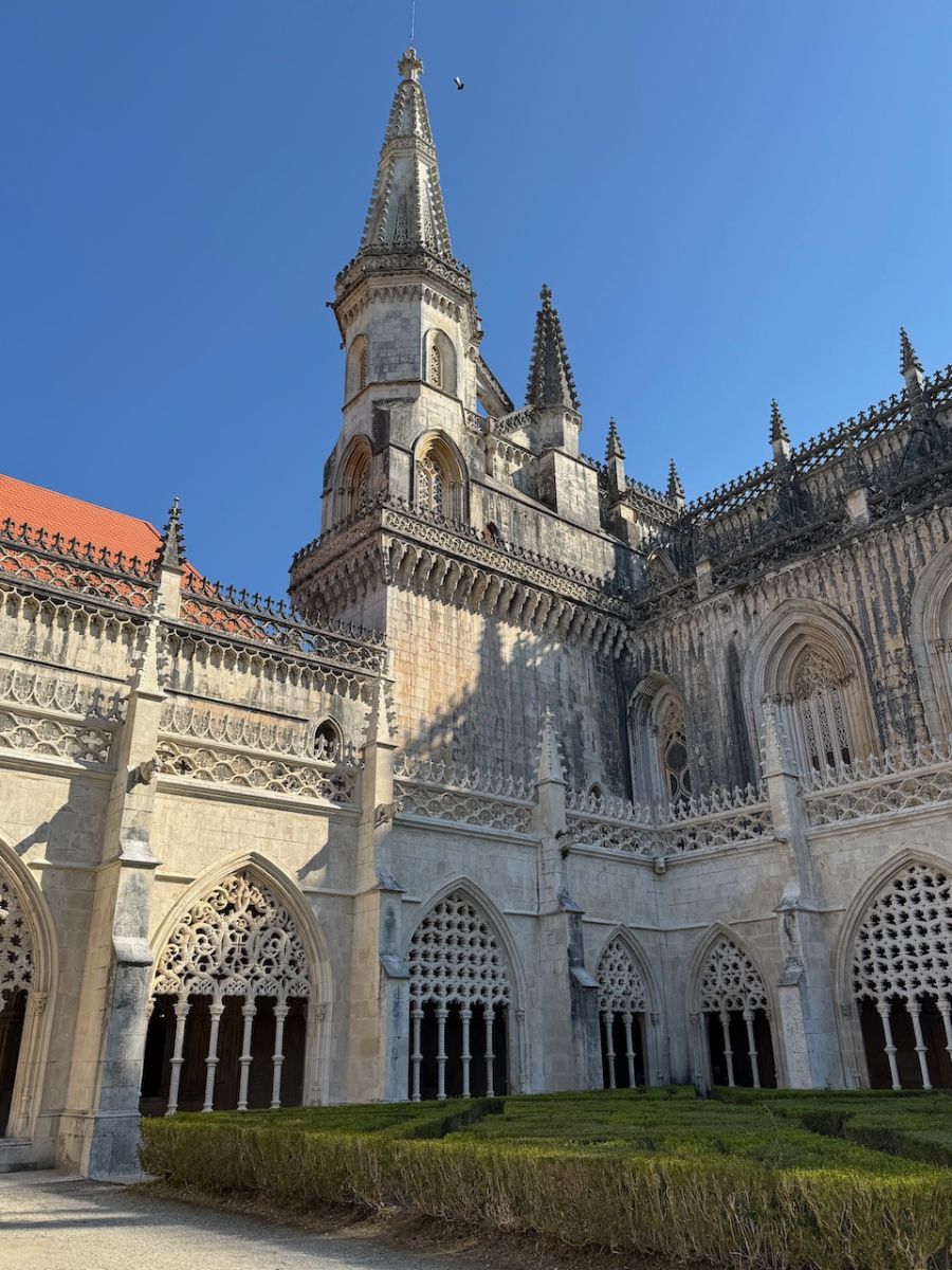 Hier schien die Sonne, und wir genossen die Mittagspause. Um 14.30 Uhr ging es zurück, denn um 15.30 Uhr hatten wir unseren Eintritts-Slot im Kloster Mosteiro dos Jerónimos. Eine wunderschöne Manuelinische Architektur mit vielen filigranen Steinmetzarbeiten. Sowohl die Kirche als auch das Kloster selbst waren sehr gut besucht. Das Kloster hat einen zweistöckigen Kreuzgang, der sehr sehenswert ist. Ich brauche wohl nicht erklären, dass dies ein Hotspot für asiatische junge Leute für Instafotos ist. Oft mussten wir das Posing stören, damit wir den Rundgang machen konnten. Auch hier mussten wir der Reiseleiterin im schnellen Schritt folgen.